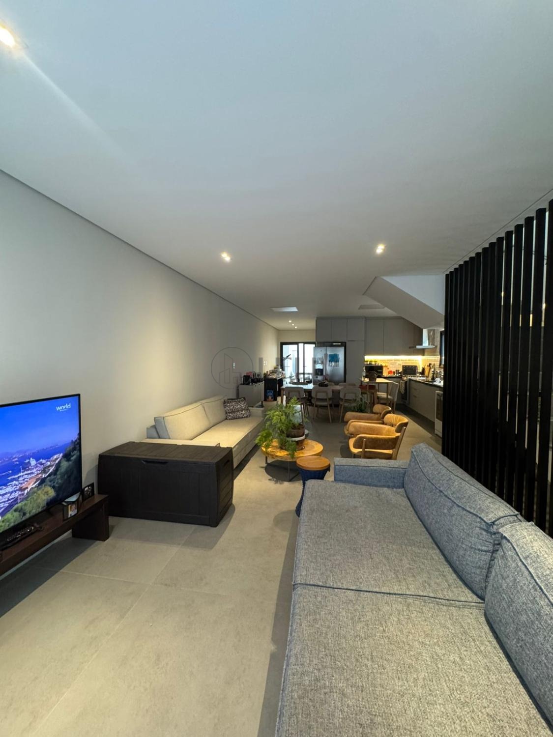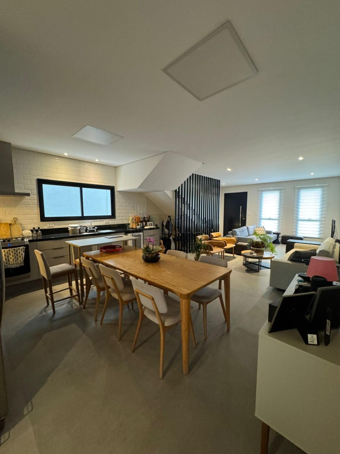 Ampla sala para 3 ambientes distintos, acompanhada por um elegante lavabo. A cozinha foi finamente planejada no estilo americano com uma linda ilha central.