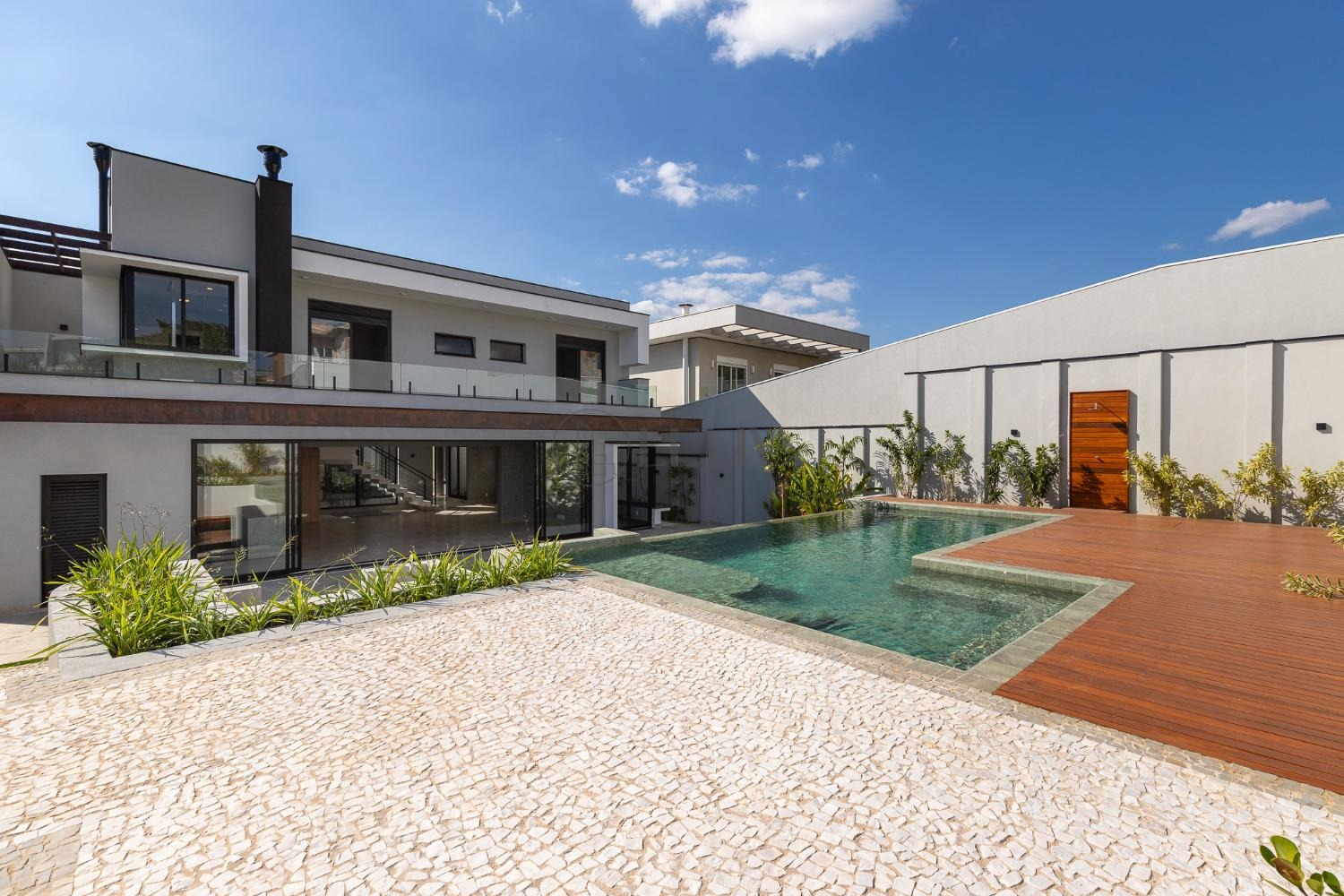Amplo quintal com piscina, deck e espaço para implantação de pomar, além de uma adega.